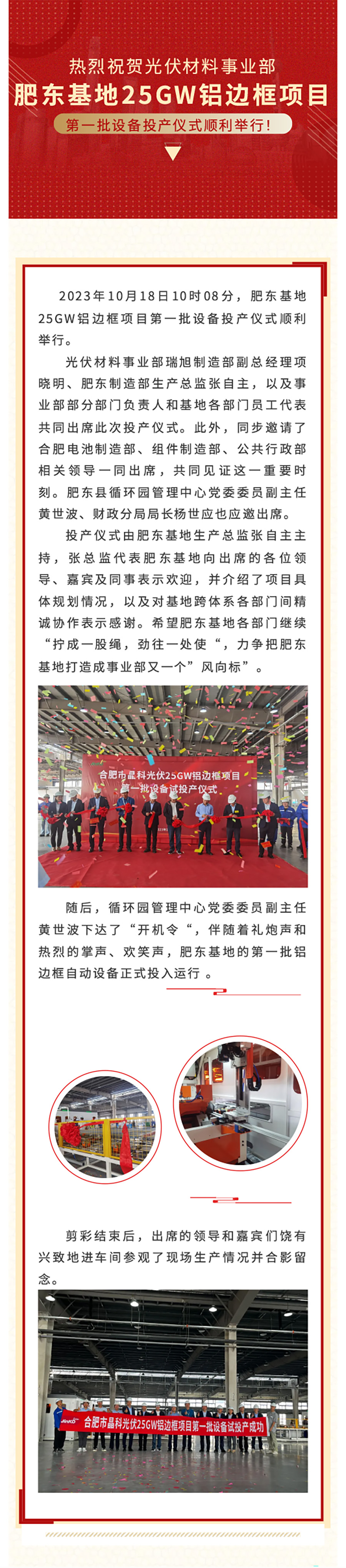 光伏材料事業部肥東基地25GW鋁邊框項目第一批設備投產運行!