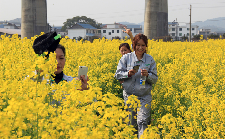 春風得意馬蹄疾,開春閱盡上饒花。在公司工會的精心準備下,一行人首先來到了丁家村的春色田園中,丁家村村委會前大片金黃色油菜花燦爛盛開,宛如一張巨大的黃金地毯鋪在那里,迎接晶科光伏材料女同胞們的到來。春光明媚,風和日麗,沐浴在溫暖的陽光中,呼吸著新鮮的空氣,在這個花開的季節中,所有人仿佛變成了孩子,歡蹦亂跳,享受著這份孩童般的純真與激情。在這過程中她們遠離工作的壓力,縱情花海田園之間,在嬉戲的同時,更感受到了大自然春的氣息,綻放著作為女人的美麗。