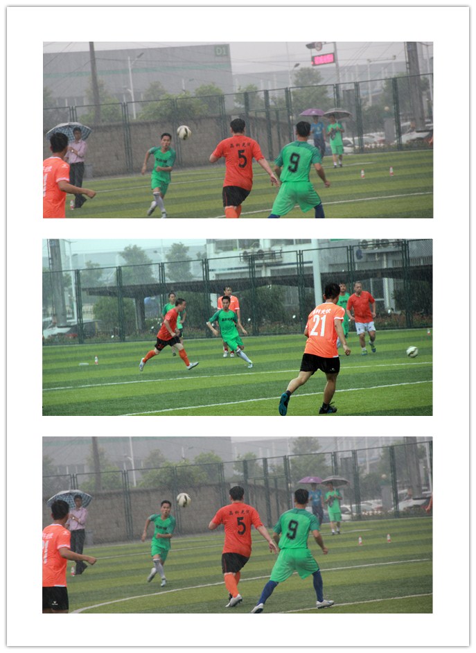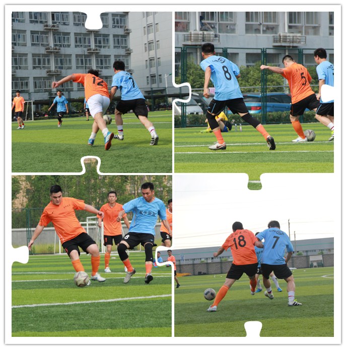 6月7日下午一點三十分,光伏隊和展宇隊在決賽場相遇。強強相逢,比賽剛開場隊員們就迅速進入了比賽狀態,雙方都使出全力你拼我搶,沒有絲毫保留。上半場剛開場10分鐘,12號就率先突破禁區,向對方球門發起沖鋒。連過兩人直接射門,可惜被對方守門員撲出。雖然沒有成功,但是光伏隊氣勢大漲,繼續在球場奮戰,接連組織了多次強有力的進攻。觀眾們的激情也被這樣精彩的球賽所點燃,大家紛紛為自己支持的球隊加油。下半場兩隊均有多次有精彩的射門,但都沒能突破彼此堅固的防線,到了比賽時間結束雙方比分為0:0平。在仍未決出勝負的情況下,雙方決定采取殘酷的點球大戰。經過一輪的點球,光伏隊錯失一球,惜敗展宇。
