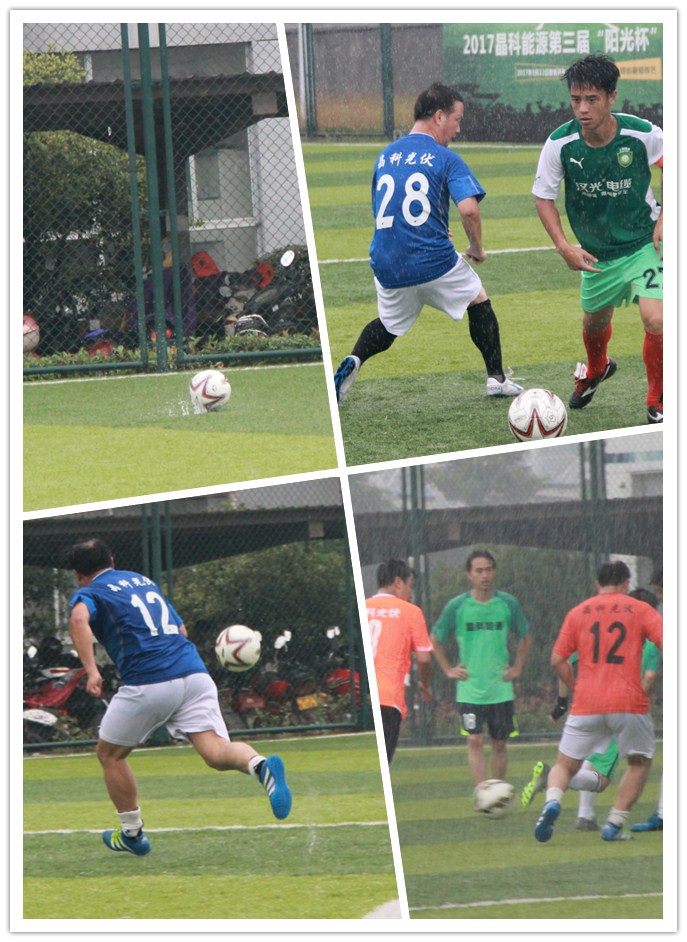 4月23日中午一點三十分,隨著主裁判的一聲哨響,第三屆“陽光杯”足球賽拉開了序幕,來自晶科光伏材料、晶科能源、展宇新能源的多支隊伍開始了激烈的小組積分賽。