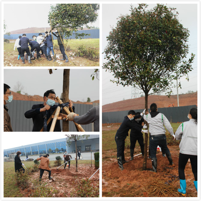 春天是一個萬物復蘇、欣欣向榮的季節,晶科光伏的各部領導、同事齊聚,共同種植企業長青樹,旨在為復工復產建設營造良好氛圍,將信心傳達到基層班組,同時為綠化我們的工作場所盡一份義務。參與人員從分組商議、挖掘種植、擺放造型、精心修剪,完成了為期半天的植樹活動。