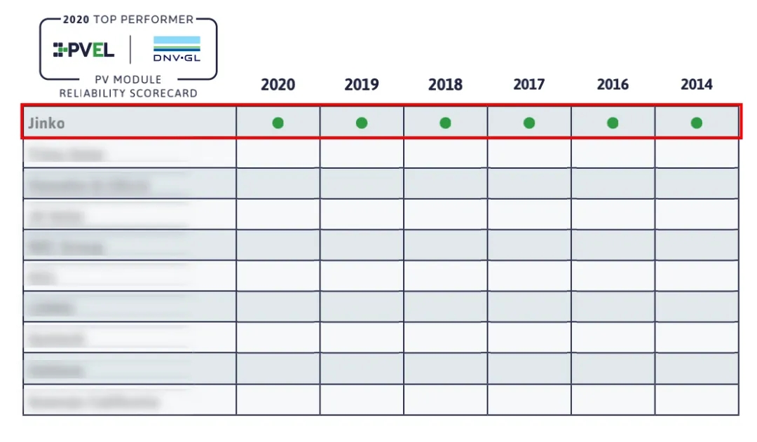 晶科能源連續(xù)六年斬獲PVEL/DNV GL光伏組件可靠性記分卡“表現(xiàn)最佳”榮譽