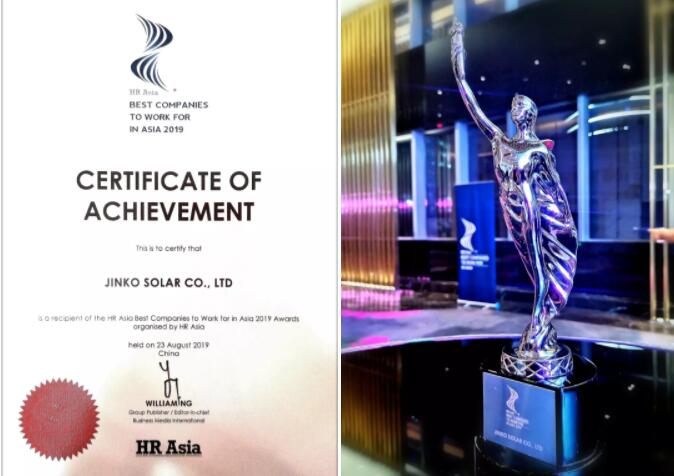晶科能源連續兩年榮膺由亞洲權威人力資源專業刊物HRAsia頒發“亞洲最佳企業雇主獎”