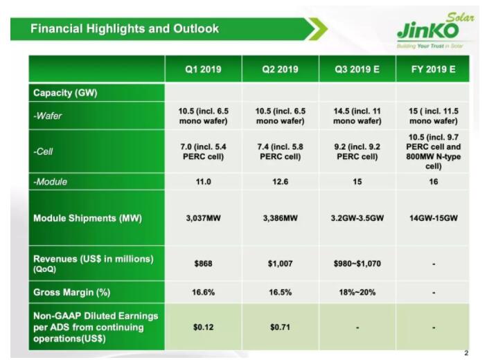 ◎ 2019年全年,預(yù)計(jì)太陽能組件總出貨量在14.0吉瓦到15.0吉瓦之間。
