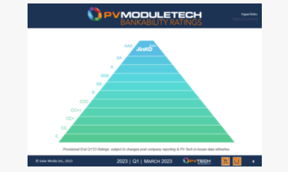 晶科能源在最新PV ModuleTech可融資性評(píng)...